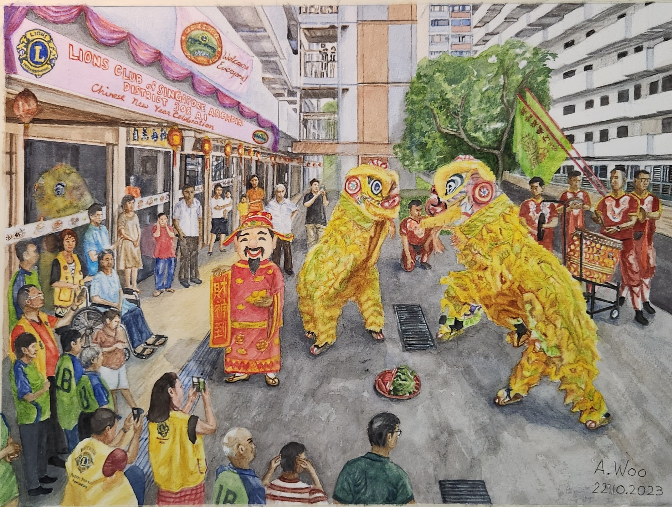 48.5 x 36 cmCelebration is an event to share happiness during an important occasion such as the Chinese New Year, birthdays and business prosperity. As part of the celebration, the lion dance is performed to bring in good luck and fortune. The god of fortune is also a welcoming sight.